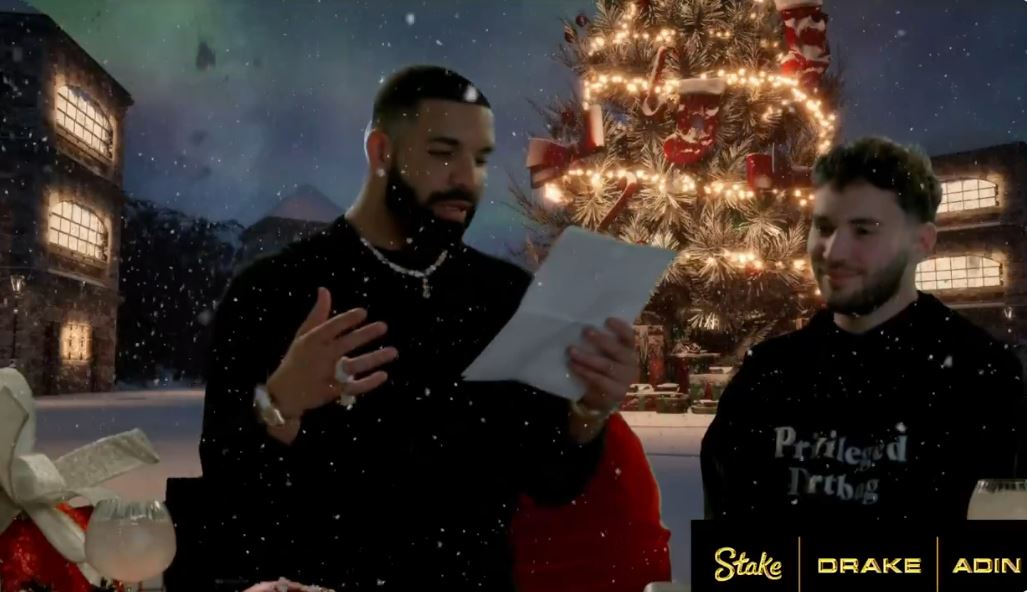 On December 26, Drake and Adin Ross collaborated with Stake to host the “Drizzmas Giveaway” live broadcast, which he called “the largest live broadcast giveaway ever.”