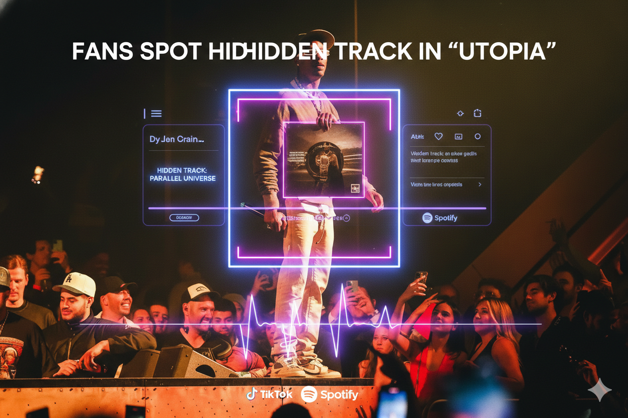 Fans scanning the vinyl credits for Travis Scott’s album UTOPIA believe they spotted a hidden track title not listed on the official digital tracklist. Photos of the vinyl liner notes began circulating online, showing a song name that does not appear on streaming platforms.