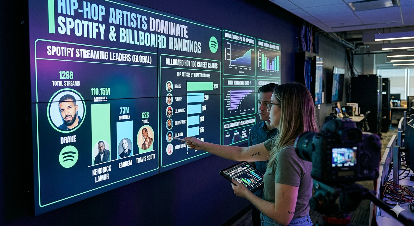 Hip-hop continues to dominate the global music landscape, with artists like Lil Baby, Kendrick Lamar, and Drake topping recent Spotify and Billboard rankings.
