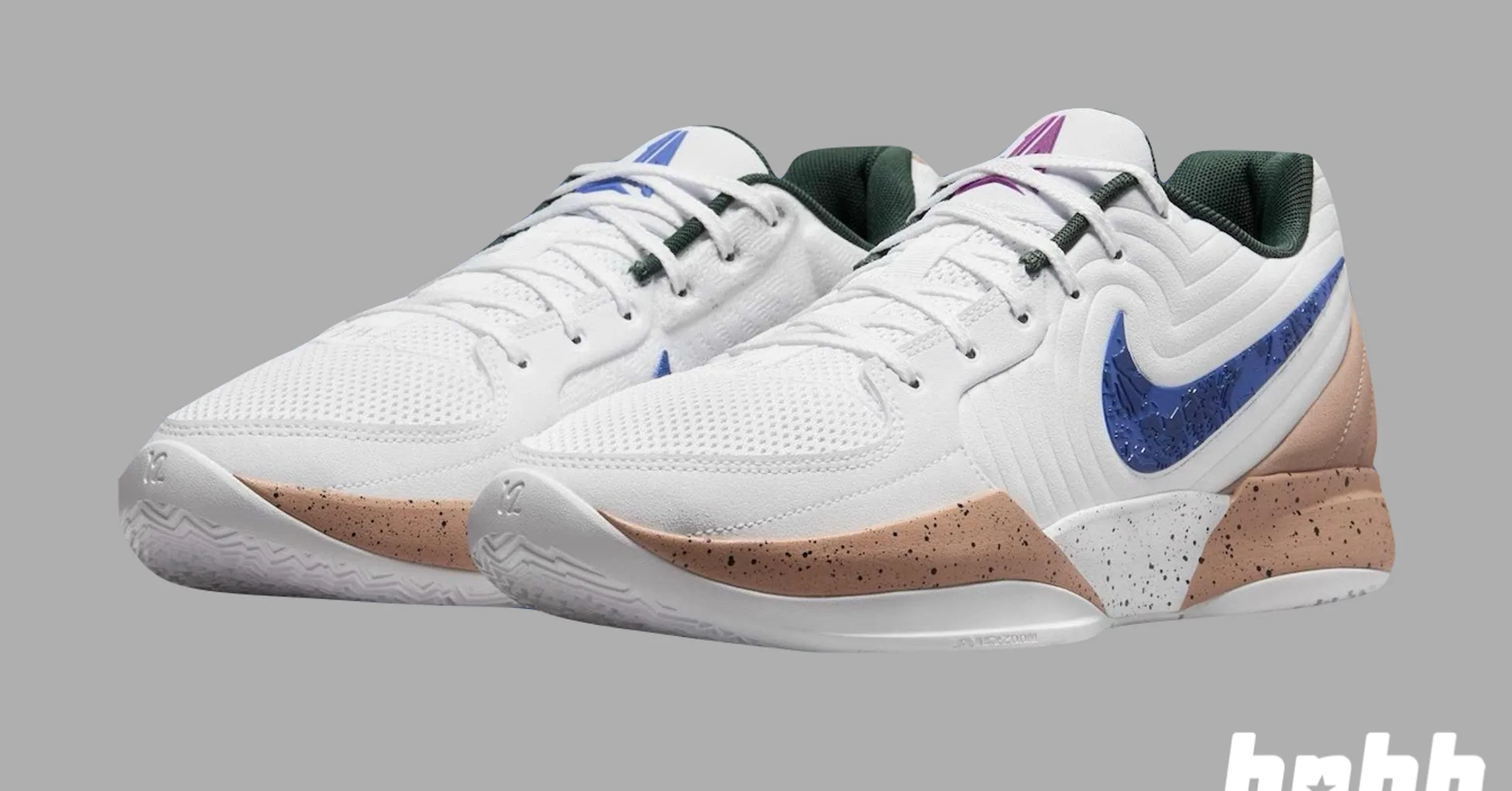 Official photos of the Nike Ja 2 “In The Woods” colorway have been released. They give sneakerheads a closer look at Ja Morant’s iconic sneakers. Inspired by Ja’s childhood grandmother’s home, the color palette combines white, blue and brown tones to represent the natural elements that shaped his environment. Additionally, the upper is predominantly white with light blue detailing on the Swoosh and heel tab. Brown accents on the midsole and sides create a rustic feel that reflects the woods surrounding Morant’s childhood home.