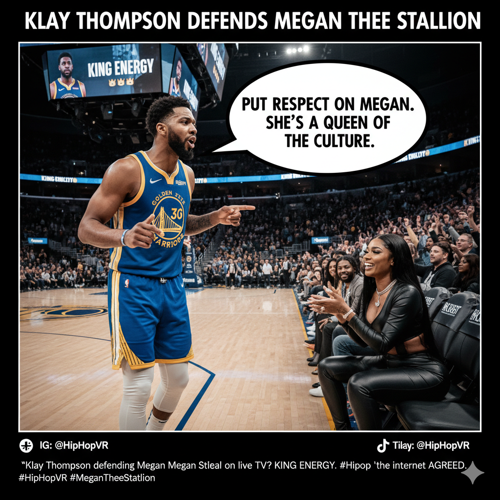 Golden State Warriors star Klay Thompson publicly defended Megan Thee Stallion after a pair of NBA commentators made dismissive remarks about her presence courtside.