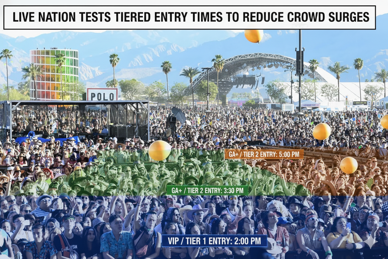 Live Nation is testing tiered entry times at select concerts to reduce overcrowding and long entry lines. Ticket holders are assigned specific arrival windows, similar to airline boarding groups.