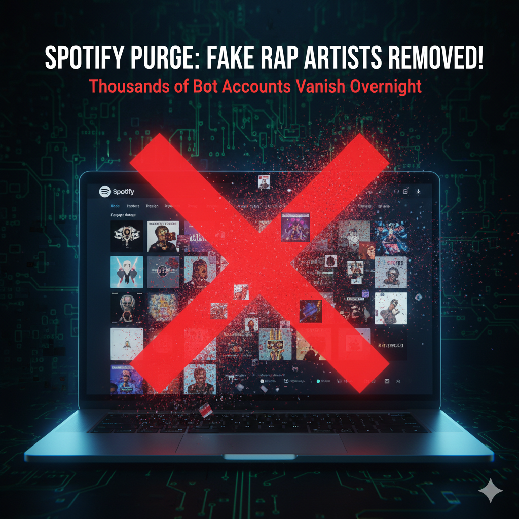 Spotify has removed thousands of fake rap artist accounts after an internal audit flagged artificial streaming activity, duplicated metadata, and AI-generated profiles.